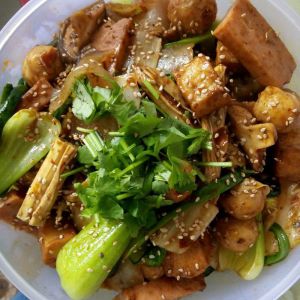出锅,撒上芝麻,香菜,ok开饭了。