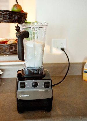 鲜奶油、嫩豆腐、椰汁、砂糖、香草棒、盐倒入打汁机打匀