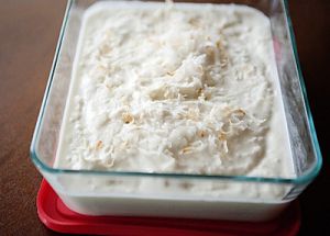 倒出来,剩下的椰子丝撒在上面放入冰箱冷冻