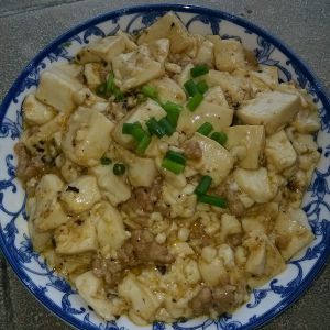 放肉末,一起煮。肉熟了,豆腐也有肉味啦。