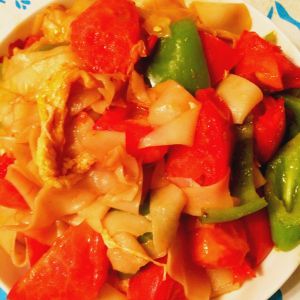 鸡蛋炒好放西红柿和辣椒同炒,放盐。