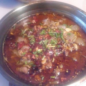 最关键的步骤来了,收汁完装碗后在表面覆盖一层干辣椒面,在辣椒面上再放少许大粒干辣椒与花椒,重新热适量菜油烧至高温浇在干辣椒与辣椒面等上面,随着一阵香味飘出洒下葱花既可!!!