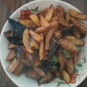 茄子土豆过油炸熟