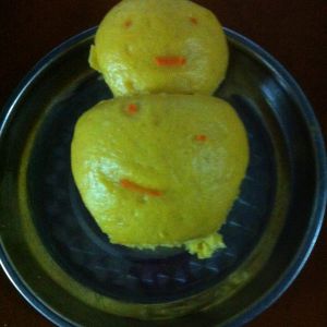 把面粉,白糖,半勺酵母,蒸熟并搅烂的南瓜揉匀,放置两小时后成两倍大,再继续揉匀整形。