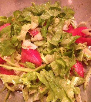 沙拉看心情!想吃酸的,你就多放些醋!想吃甜的,你就多放糖!蔬菜切好后,把调味料放进去,搅拌一下!就OK啦!有肉食动物的亲,那你就加水煮鸡胸肉(现在非常时期,大家谨慎啊),金枪鱼罐头啊,等等!