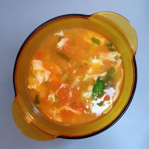 1、柿子切块、葱花香菜蒜瓣切末、鸡蛋打散;