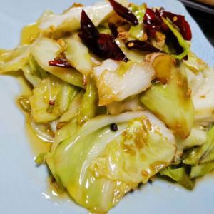 包菜洗净,沥干水后,准备辅料。辣椒可以多准备一点。
