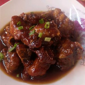 起锅小火,锅里加50克清水,然后加入白砂糖,小火慢炒,炒到起泡,在到变红,加入清水,排骨,清水满过排骨即可。对于新手来说,炒糖色最要注意的就是把糖色炒苦,或者不够红,要把糖色炒好可能需要多练习,因为生活中很多菜都需要炒糖色来增加颜色或者口感,最笨的方法就是等你炒好的白砂糖稍微边红就可以加水了!然后偿一下有没有苦味就可以了!然后调味,加入白醋,耗油少许,生抽少许,鸡精少许,食用盐少许,要是不够甜,或者不够酸可以多加点糖,或者白醋,按个人口味来定的。盖上锅改小火闷10分钟左右,然后大火勾欠,就可以出锅了!