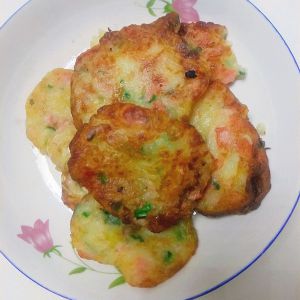 捏成小饼(可以在外边蘸点面粉,以免粘锅)