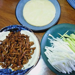 猪肉、大葱、青瓜切丝(切好的肉➕适量盐➕生抽➕淀粉抓匀)