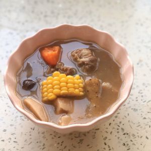 非常简单的排骨汤就完成了,因为放了黑色玉米,汤的颜色略深。