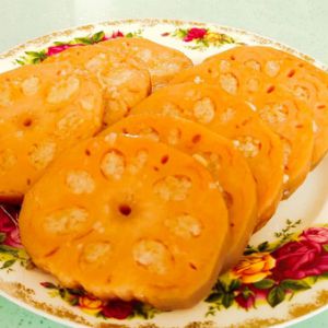 放入高压锅,加入事先准备好的红糖、红枣、干桂花,倒入饮用水(淹没藕即可),高压锅炖煮45分钟,不用打开锅,藕在锅中继续浸泡8-10小时(晚上做,第二天取出即可)