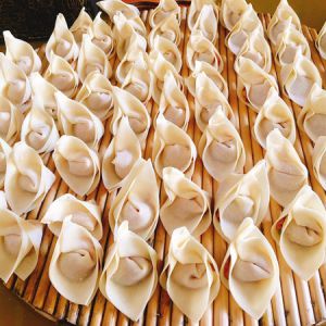 这一步忘了图片,肉剁好了加入一些小葱白切成小颗粒放入肉馅里面,(小葱的其他部分可以切成葱花备用),然后加入适量的盐、鸡精、胡椒粉、一个鸡蛋、食用油朝一个方向搅拌,如果肉馅比较干就适量的加一点点清水继续搅拌这样做出来的肉馅口感好肉质细嫩,尽量多搅拌一下