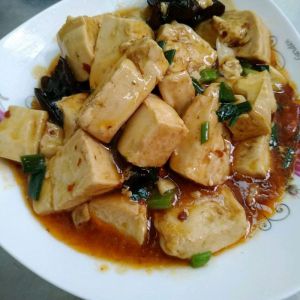 锅中放油,放入一小碗水,加入盐,生抽,蚝油,料酒,老干妈烧开,然后放入豆腐中火慢炖15分钟。