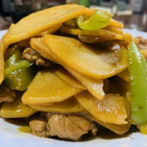 下土豆不停地翻炒,让肉的味道与土豆融合