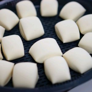 切的时候基本切成长宽差不多的形状,因为馒头发酵到时候会往两头涨,如果切成长方形,就站不住咯!