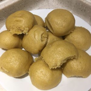 准备好面粉(我用的是高筋面粉)玉米面及用温水化好的酵母。面粉和玉米粉的比例是1:1;
