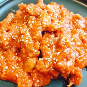 锅内热油,将里脊一天天的裹上面糊,放入五成热的油锅炸至微黄,捞出,油温六成热后,再讲里脊倒入,炸至金黄