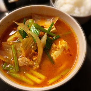 倒入半勺料酒,一勺味淋和大喜大牛肉粉