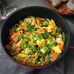 放入生抽 蚝油 盐翻炒均匀,最后放入煮好的面条和炒好的鸡蛋翻炒均匀即可出锅