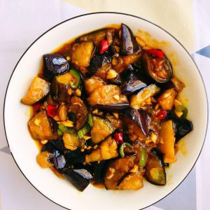 锅里放油,油热放入茄子,翻炒软之后加入调好的料汁,小火收汁。