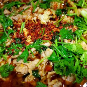 准备好的蒜泥,辣椒面,香菜末,铺上面