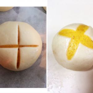这里我们用南瓜做馅料,蒸熟的南瓜捣成泥,放凉后加入1个鸡蛋,两勺白糖,4-5g发酵粉(酵母粉一般是100g面粉放1g酵母粉),面粉适量(面粉的量是看你蒸的南瓜多少来放),这里不用加水,揉成光滑的面团密封发酵到两倍大。一般我把要发酵的面团放40度左右的温水里,一个小时就发酵好了。