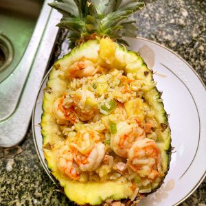 把凤梨肉挖出来备用,凤梨壳用来盛饭