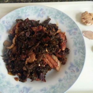 放入梅干菜翻炒均匀。