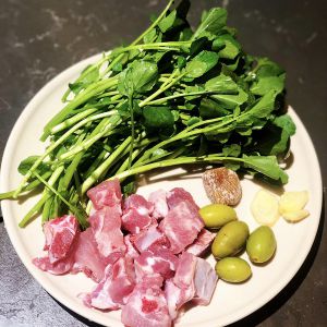 洗净排骨,西洋菜摘掉头,吃起来嫩一些,按上图准备好所有材料。