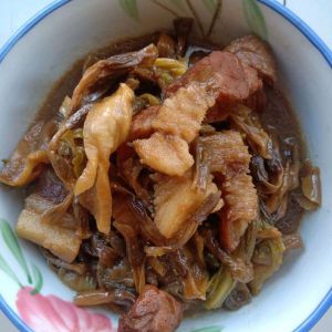 翻炒均匀加水小伙炖30分钟左右(根据自己干菜泡的时间自己掌握火候)我干菜泡的时间短也许时间还要长点。