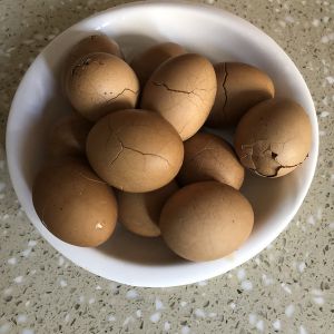冷水下锅煮开,煮5分钟即可,捞出冲凉敲碎鸡蛋备用