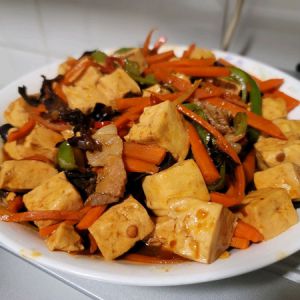 备菜如图:豆腐水开放1勺盐煮1分钟捞出 佐料如图,鱼香味料汁:2勺生抽2勺醋半勺老抽1勺蚝油少许盐1勺糖1勺玉米淀粉+半碗水化开。