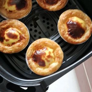 空气炸锅调200°(没有预热),蛋挞液倒进蛋挞皮里,放空气炸锅,时间10分钟