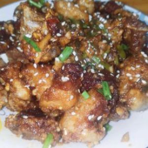 倒入排骨翻炒,加葱、白芝麻拌匀。