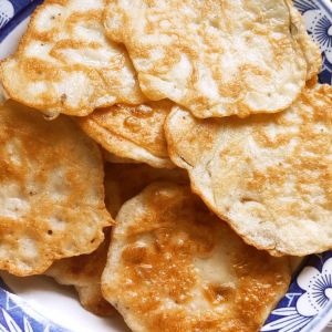 准备一个平底锅,开始煎饼,等一面凝固了开始翻另一面,等到两面金黄酥脆就可以捞出锅了