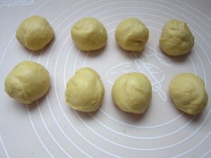 将发好的面团揉匀排气份成8份,松驰15份钟。