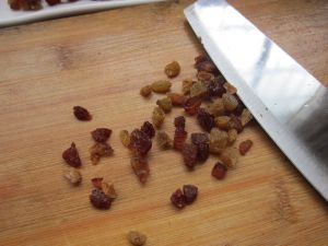 将葡萄干切成碎粒备用
