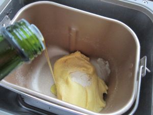加入橄榄油和酵母在按下和面程序。