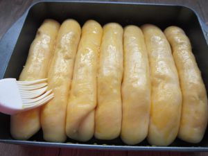 发酵好的面团刷上蛋液。