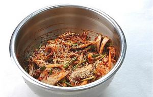 冲洗完的泡菜需要将水分控干,去除多余水分。