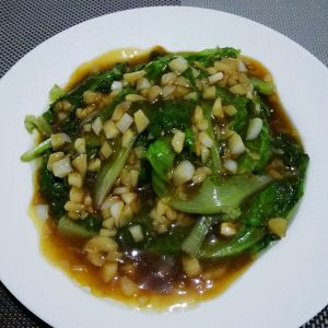 不粘锅中加入少量食用油,蒜末下锅煸炒