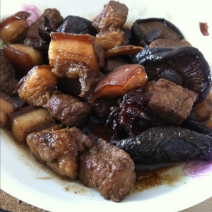 加入水 沒过肉既可 放入香菇 八角 关小火慢炖