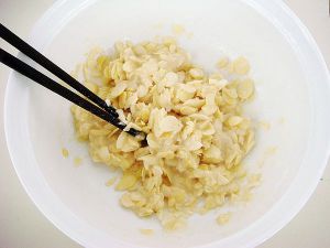 将所有杏仁瓦片材料用橡皮刮刀充分搅拌均匀备用。