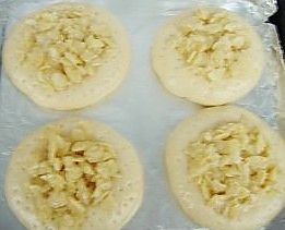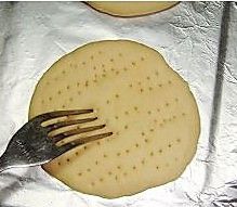 排于烤盘上,用叉子在表面均匀的刺洞,然后放温暖处进行最后发酵。