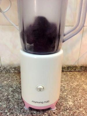 蒸好的紫薯放入九阳料理机中,(宝宝吃所以加入的高汤偏多,根据个人口味选择)加入少量高汤将紫薯打成泥