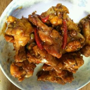 大火收汁时,要不停的翻炒翅根,以便汤汁均匀的沾在翅根上。