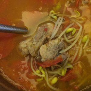 番茄炒一下鲜一些 水开后 放入豆芽 金针菇 姜坨 炒过的番茄 小火慢慢熬