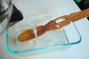 加入清水,再加入1汤匙盐,搅拌均匀,浸泡20分钟左右