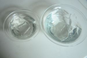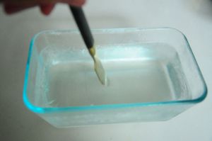 玻璃瓶中倒入90度以上的开水,并不断进行搅拌,直至冰粉充分融化
